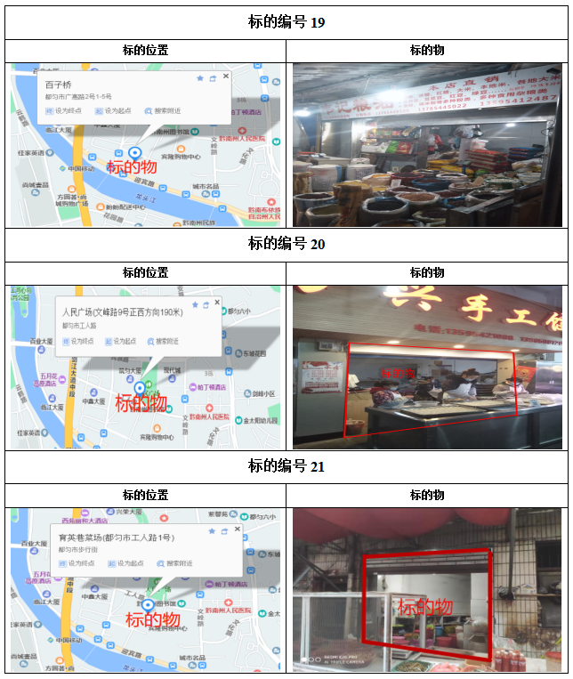 2021年1月28日上午9:00拍賣標(biāo)的共計(jì)40個(gè)標(biāo)的,其中:1—34號(hào)標(biāo)的目前均為租賃狀態(tài),如承租人參與競(jìng)租,其享有同等價(jià)位優(yōu)先購買權(quán),其余35—40標(biāo)的為閑置狀態(tài)。