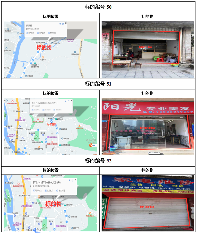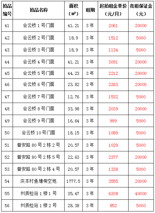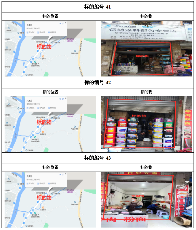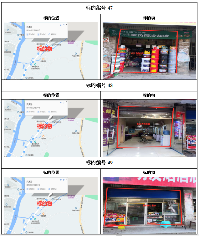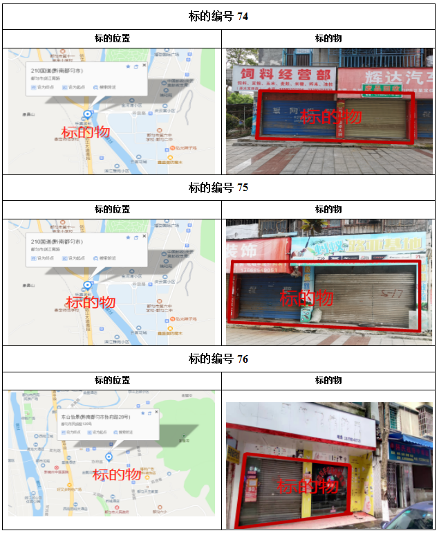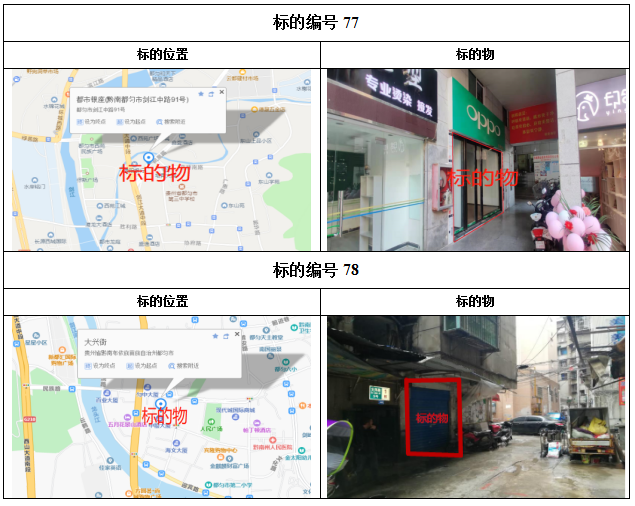 2021年1月28日下午14:00拍賣標(biāo)的共計(jì)38個(gè)標(biāo)的,其中:41—72號(hào)標(biāo)的目前均為租賃狀態(tài),如承租人參與競(jìng)租,其享有同等價(jià)位優(yōu)先購買權(quán),其余73—78標(biāo)的為閑置狀態(tài)。