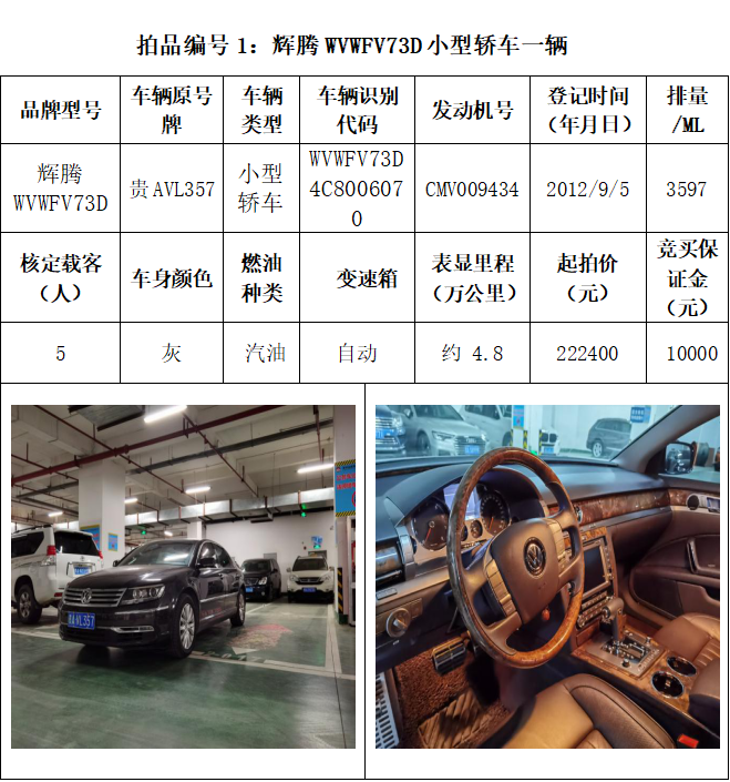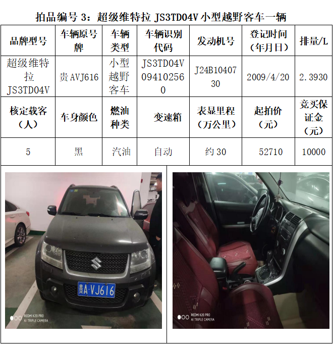 貴州春秋拍賣有限責(zé)任公司拍賣車輛拍賣公告