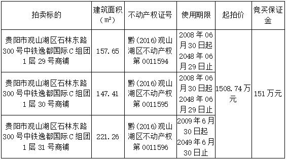 貴陽(yáng)市觀山湖區(qū)石林東路300號(hào)中鐵逸都 國(guó)際C組團(tuán)1層29、30、31號(hào)商鋪拍賣(mài)公告