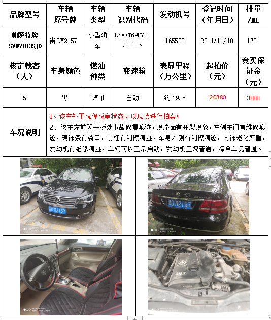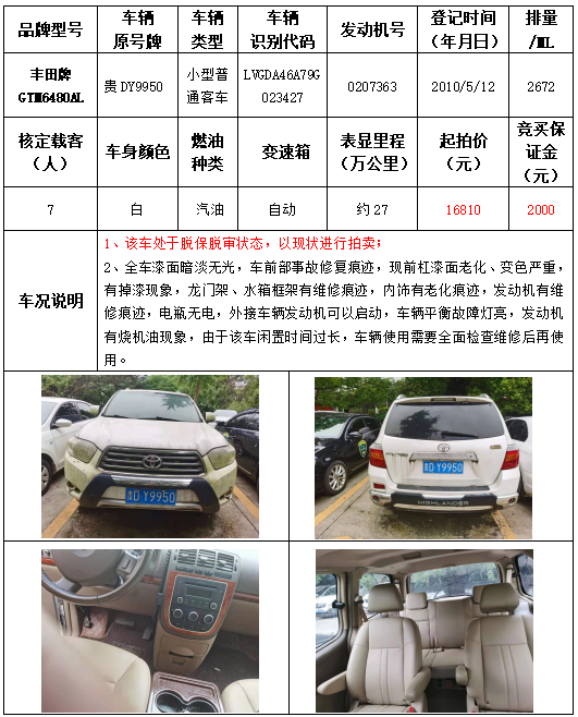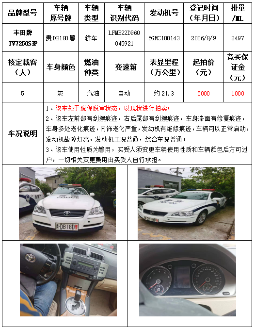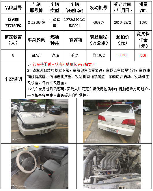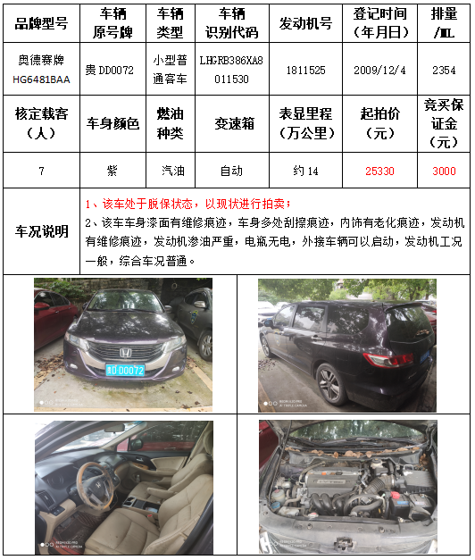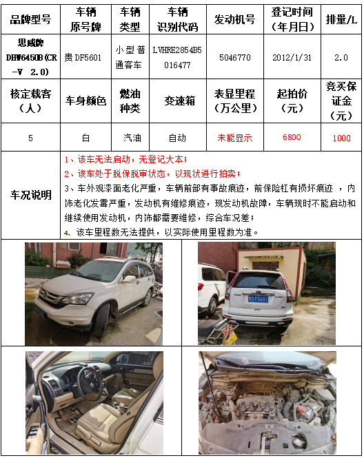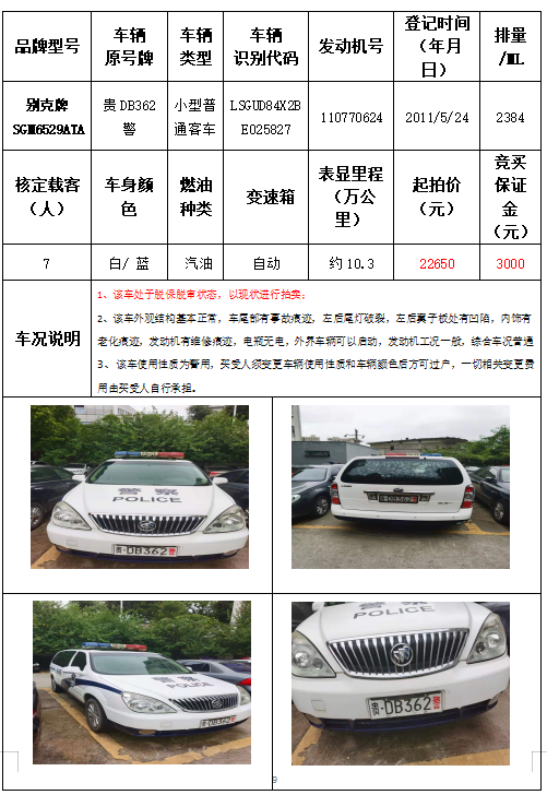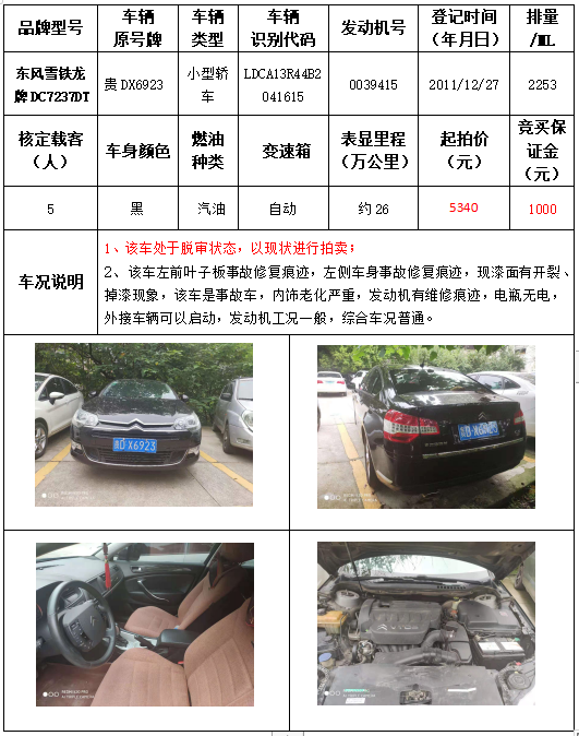 受委托,本公司定于2021年9月16日(星期四)下午14:30時,在銅仁市碧江區(qū)川硐教育園區(qū)誠信路銅仁市公共資源交易中心開標六室(拍賣大廳)公開拍賣以下車輛: