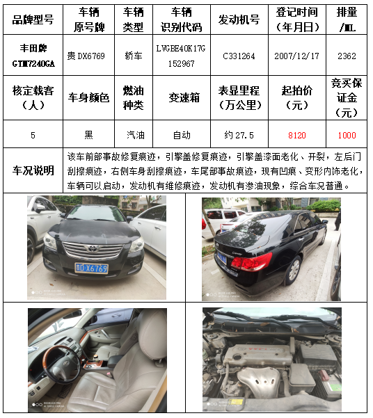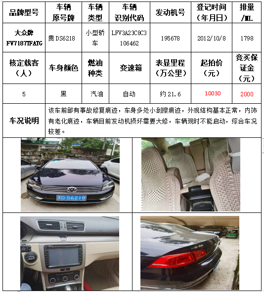 貴州春秋拍賣有限責(zé)任公司銅仁市機關(guān)事務(wù)中心車輛拍賣公告