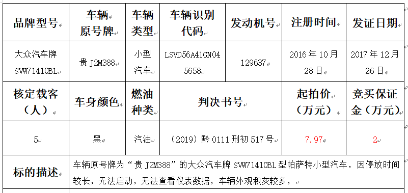 拍品編號(hào)2:大眾汽車牌SVW71410BL型帕薩特小型汽車一輛