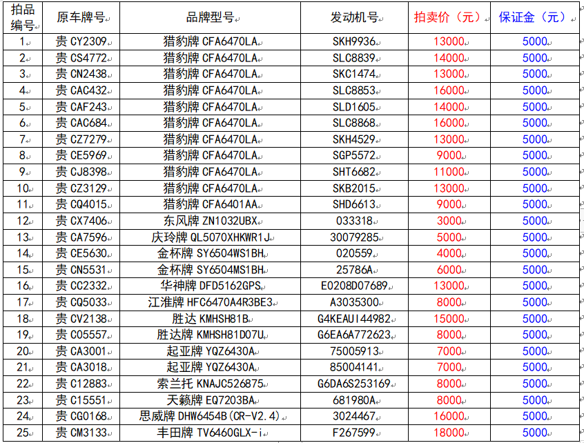 拍賣公告丨貴州省煙草公司遵義市公司25輛機(jī)動(dòng)車拍賣公告
