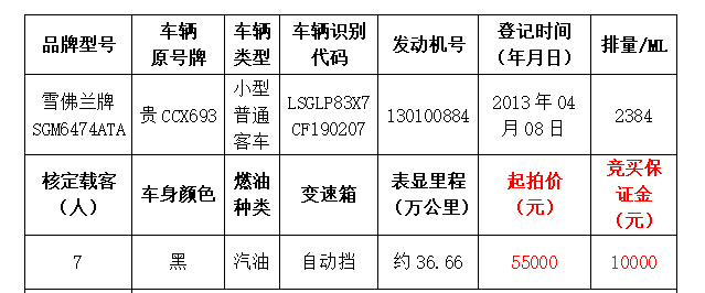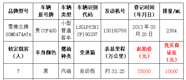 拍品編號(hào)1:雪佛蘭牌SGM6474ATA小型普通客車(chē)一輛
