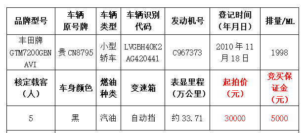 拍品編號(hào)3:豐田牌GTM7200GBNAVI小型轎車(chē)一輛