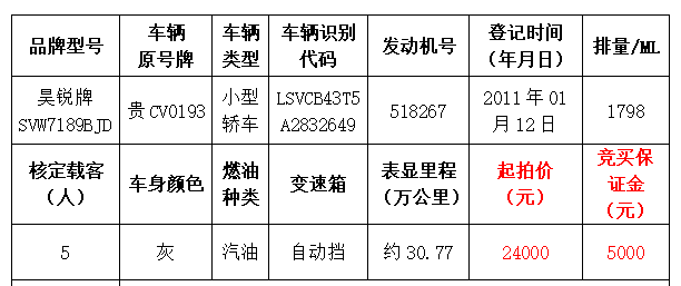 中國(guó)農(nóng)業(yè)銀行股份有限公司遵義分行車(chē)輛拍賣(mài)