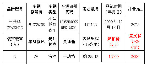 拍品編號(hào)5:三菱牌CFA2031G小型越野客車(chē)一輛