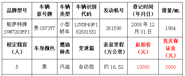 拍品編號(hào)6:帕薩特牌SVW7203FPI小型轎車(chē)一輛