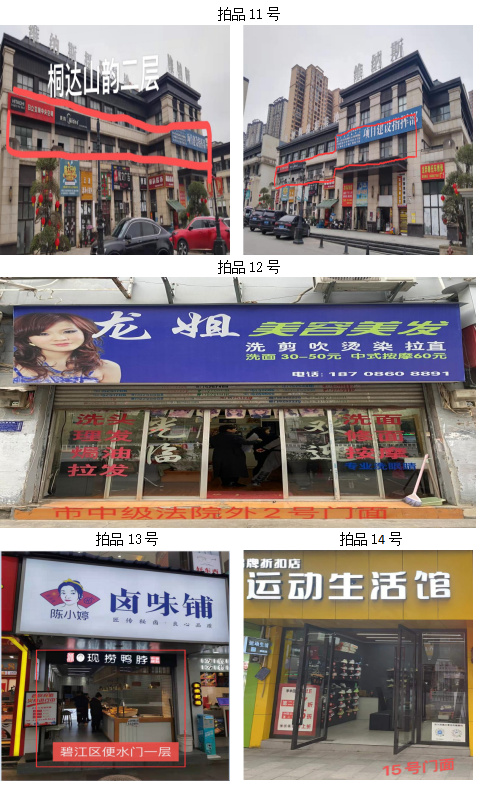 拍品14至22號標(biāo)的:位于清水大道銅仁農(nóng)校旁,地理位置優(yōu)越,屬于黃金大道。附近有大專、中學(xué)、小學(xué)、幼兒園等,教學(xué)配套齊全;擁有眾多小區(qū),人口流動能力強,固定人口較多;周圍有超市、商場,人口流動性強。地理位置優(yōu)越,屬于臨街門店,升值空間較大;地區(qū)基礎(chǔ)設(shè)施完善,公共交通、公共停車設(shè)施的增加,使該地升值空間進一步增大;建筑結(jié)構(gòu):磚混,面積:27.6㎡至42.4㎡不等(具體面積見上表),租賃期3年(具體日期見上表),保養(yǎng)情況:較好。