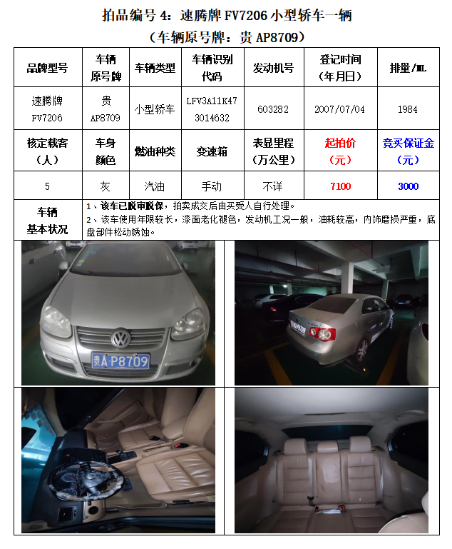 3、速騰牌FV7206小型轎車1輛;