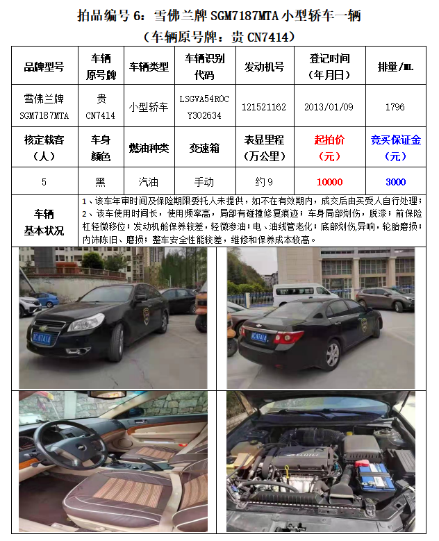 5、雪佛蘭牌SGM7187MTA小型轎車1輛;