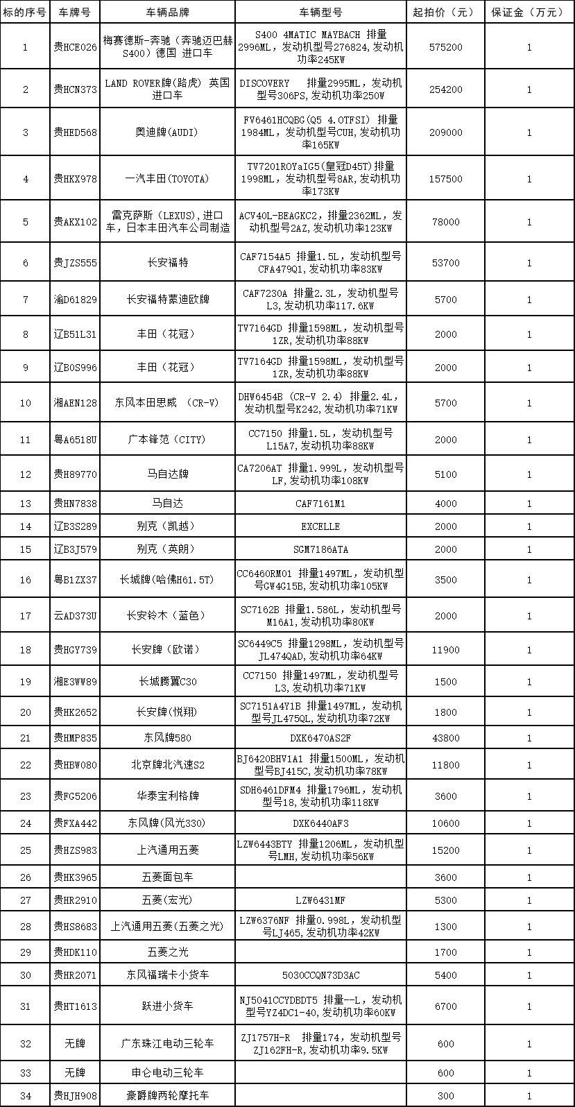 受委托,我公司將于2022年8月18日9:10在貴州省黔東南州公共資源交易中心及中拍平臺(tái)采用網(wǎng)絡(luò)與現(xiàn)場(chǎng)同步競(jìng)價(jià)方式公開拍賣奔馳邁巴赫S400、路虎發(fā)現(xiàn)、奧迪Q5、皇冠、雷克薩斯等涉案車輛34輛(可憑裁定書自行辦理過戶)。